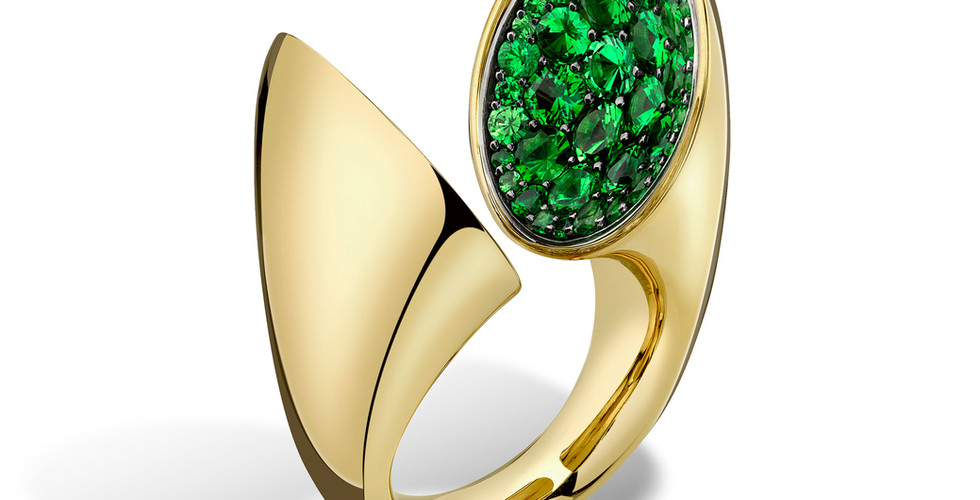 VRAM ECHO YELLOW GOLD TSAVORITE GARNETS, FROM MOMENT 1 COLLECTION.