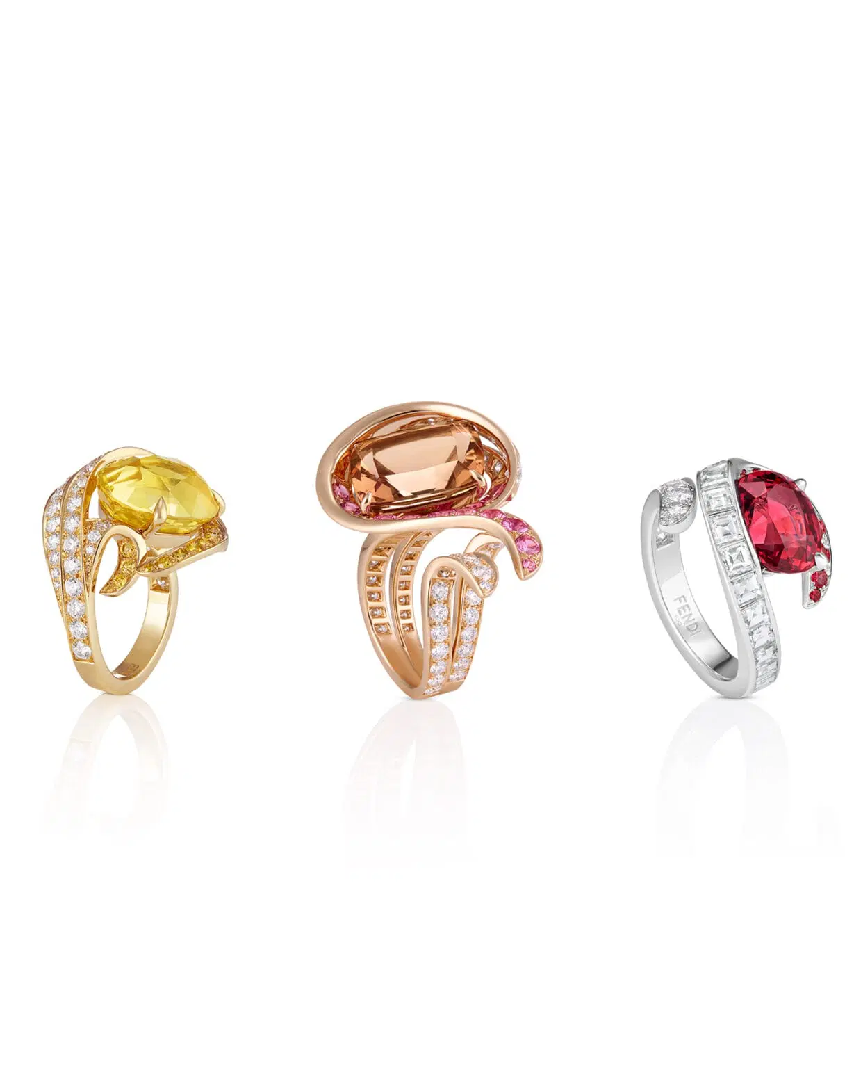 FENDI Eaux d’Artifice Sunset Rings Groupage, Fortuna Necklace, and Ovato Bracelet