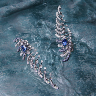 The most challenging piece for Delfina was the Cento set, where tiny crystals of rock were carved like lenses—at once magnifying and softening the diamonds beneath them. The result is a cloud-like brilliance, as if the stones were underwater yet glowing from within.