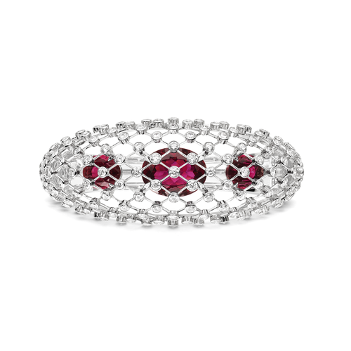 The Lacis Chapter of the collection is very postmodern in design and silhouette. Thus, the use of fil couteau setting, with its lacy structure and air of fragility, may seem counter-intuitive and yet it is just what the pieces need. The illusion of floating gemstones created by fil couteau allows larger, hero gemstones in the Lacis jewels, mostly diamonds, to appear suspended mid-air, an incredible feat of design and craftsmanship! This is taken one step further in the rubellite and diamond Lacis pieces, where the rubellite seems to be caged behind a lacy screen of white gold and diamonds, set fil couteau. Absolutely breathtaking!