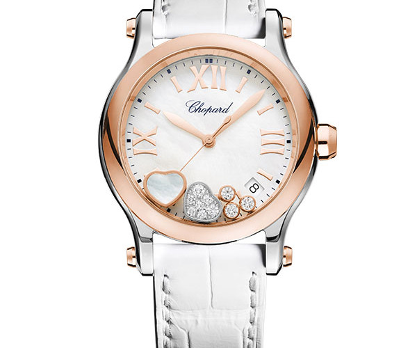 Chopard's timeless selection of heart-inspired keepsakes their iconic dancing diamonds encased within diamond-studded hearts across their 'Happy Diamonds' Joaillerie collection or the stackable 'Happy Hearts' gold and mother of pearl bangle; are both indulgent presents for a jewellery lover. The l'Heure du Diamant timepiece with its heart-shaped dial the soft pink strap is a bang on for this Valentine's day.