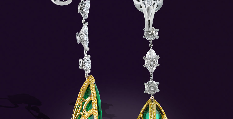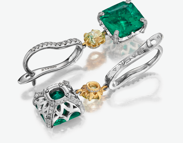Signature Emerald and Diamond earrings by Rafka