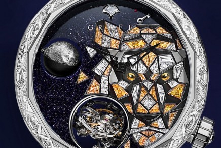 Graff’s selection for the Year of the Tiger 2022 is a stunning timepiece with a dial set with diamonds and sapphires, on a background of deep blue aventurine. The hand finished tiger motif on the dial has been crafted with an outstanding technique called diamond marquetry, whereby custom-cut diamonds and yellow sapphires have been inlaid into blue aventurine, thus adapting traditional marquetry techniques to haute horlogerie. This watch was originally part of Graff’s Endangered Species collection but continues to turn heads as it marks the start of the Lunar New Year.
